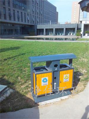 户外钢木分类垃圾桶,外形尺寸:1040/400/1000mm,整体板材采用实际厚度1.0镀锌钢板制作而成,两侧立柱为1.5厚镀锌钢管,外表做高温喷塑处理使其外表色泽鲜艳美观、防腐蚀能力更强等优点。木材采用进口樟子松经过防腐、打磨、喷漆处理,外表美观光滑,木材与桶体 链接全部使用马车栓使其牢固,永不脱落。