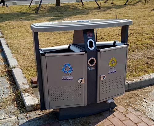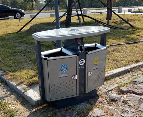 外表美观大方,结实耐用。符合现代城市的气息。产品性能:采用全钢结构,优质钢板,光滑无焊缝。桶身为数码冲孔钢板。 适用于小区别墅、酒店、学校、政府工程及其它各类环保绿化工程!产品尺寸:1000mm*420mm*1000mm.